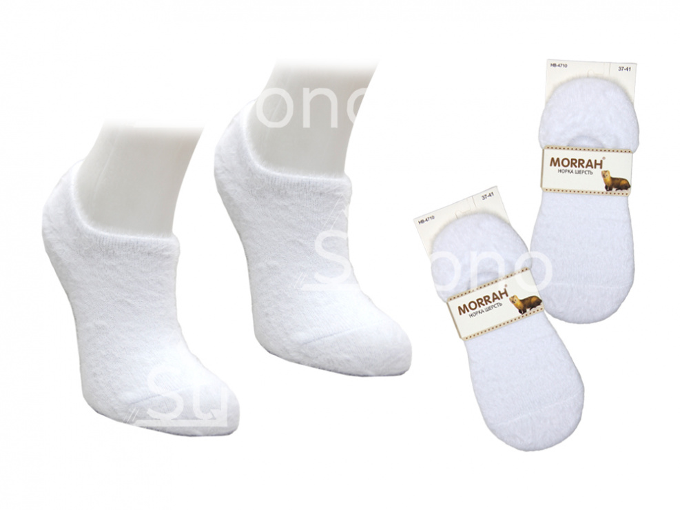 Носки женские теплые белые укороченные для сна из шерсти норки 4710 HB-MH